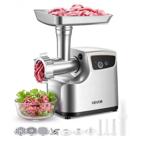 VEVOR Meat Grinder, 21 Lbs/Min Capacity Electric Meat Grinders with Blade, Grinding Plate, Sausage Maker, Stainless Steel Commercial Meat Mincer for Kitchen Restaurant Butcher Store