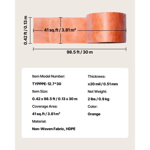 VEVOR Waterproof Membrane for Shower, 0.42 x 98.5 ft 41 sq.ft Waterproofing Tile Membrane, 20 mil Thick Polyethylene Fabric Roll, Easy to Cut for Bathroom, Kitchen, Sauna, Corners, Niches, Tile Joints