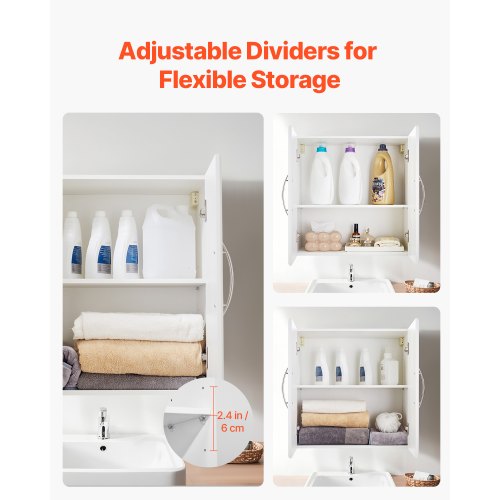 VEVOR Bathroom Wall Cabinet, 2 Doors and Adjustable Shelf with 3 Height Levels, Over the Toilet Storage Medicine Cabinet Wall Mounted, Hanging Organizer with Shelves for Laundry Room Kitchen Restroom