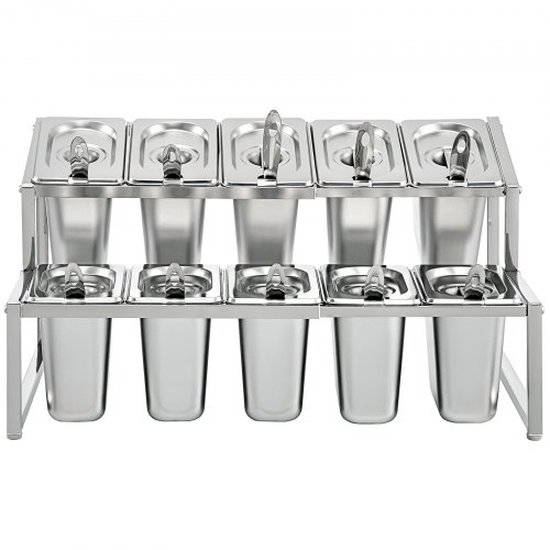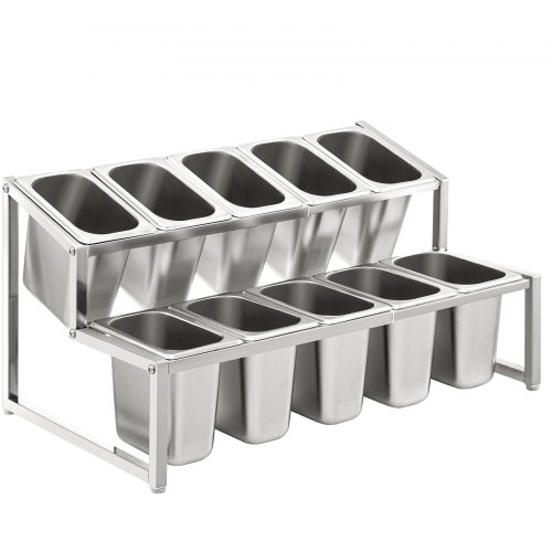 VEVOR Expandable Spice Rack, 13.8\"-23.6\" Adjustable, 2-Tier Stainless Steel Organizer Shelf with 10 1/9 Pans 10 Ladles, Countertop Inclined Holder for Sauce Ingredients Fruits, for Kitchen Pantry Us