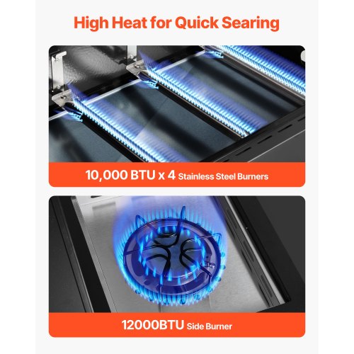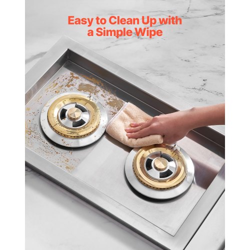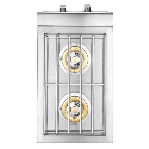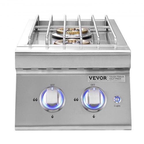 VEVOR Double Grilling Side Burners, 2 x 17,000BTU Liquid Propane Side Burner for Outdoor Kitchen, Convertible to Natural Gas, 304 Stainless Steel Built-in Double Burners with LED for BBQ Grill Island