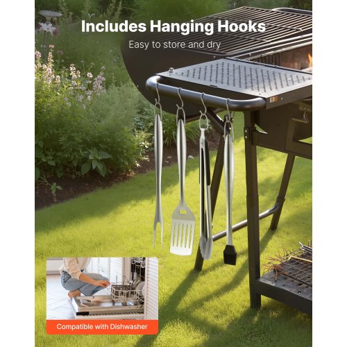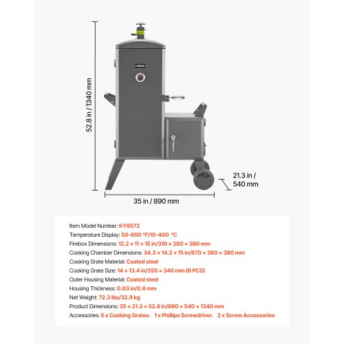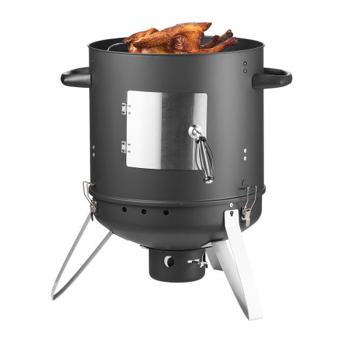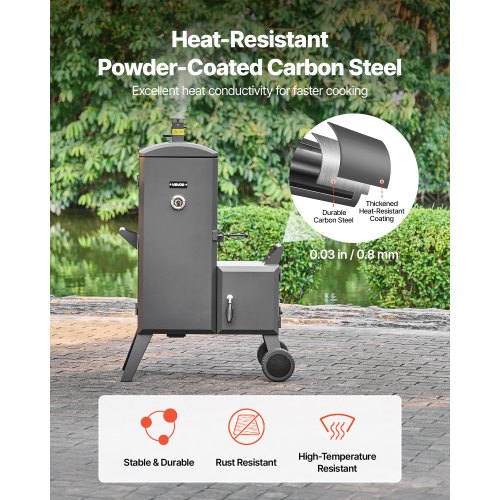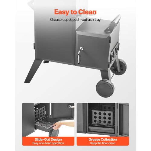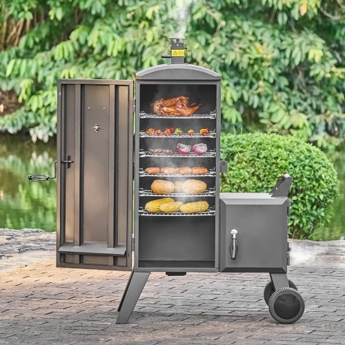 VEVOR Charcoal Offset Smoker, Heavy-Duty Steel BBQ Offset Smoker with Side Firebox, Movable Outdoor Barbecue Smokers with 6 Adjustable Grates, Thermometer & Air Vents for Backyard Patio Party Cooking
