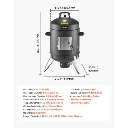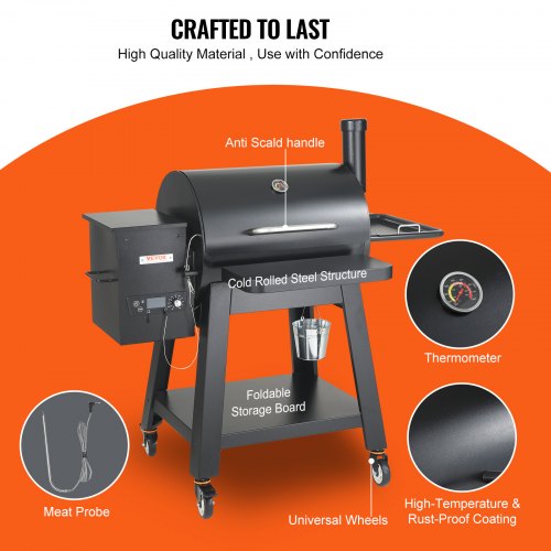 VEVOR Wood Pellet Grill Smoker, 8 in 1 BBQ Grills for Outdoor Cooking, 575 Square Inches Cook Area Electric Grill and Smoker, with LCD Screen Controller, Meat Probe, 500°F Max Temperature, Black