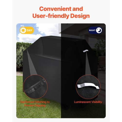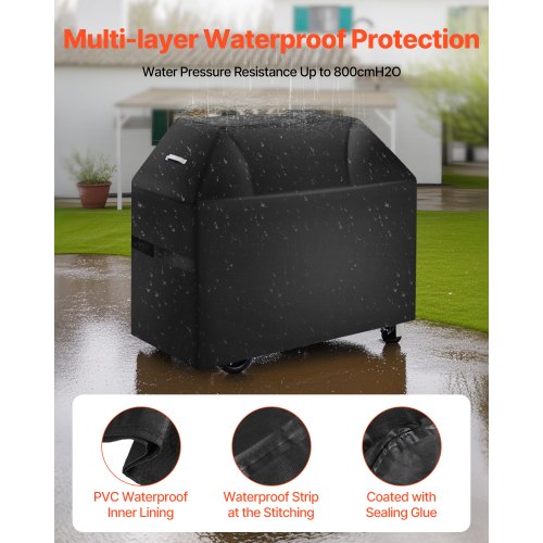 VEVOR Grill Cover, 58 inch BBQ Covers for Outdoor Grills, Waterproof, Fade Resistant, Weather Resistant Heavy Duty 600D Polyester, Easy On/Off, with Hook-and-Loop Straps, Black