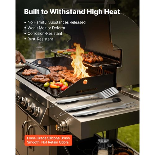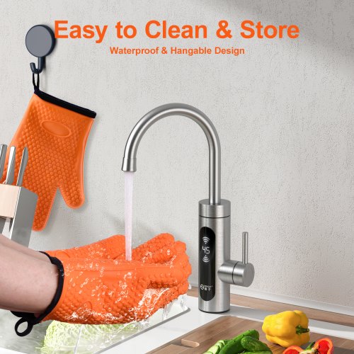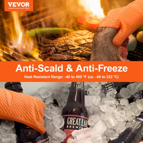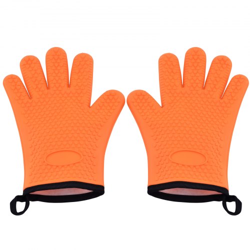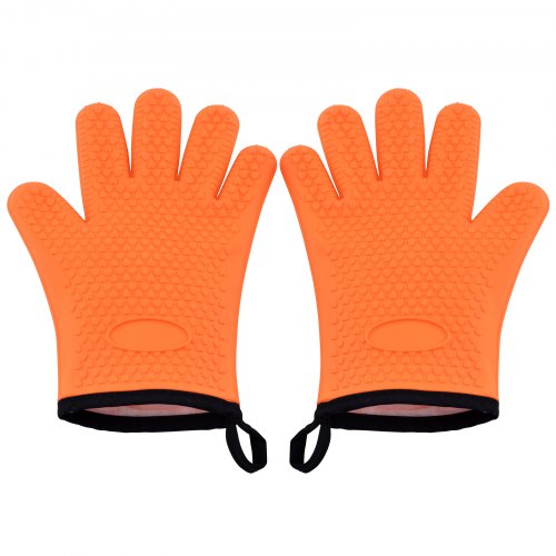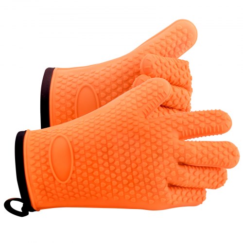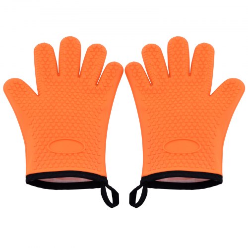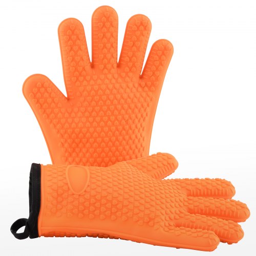 VEVOR Silicone Smoker Oven Gloves, Non-Slip Heat Resident BBQ Grill Gloves with Fingers, Waterproof & Hangable Design, Easy to Clean & Store, for Grilling, Oven, BBQ, Baking, Frying