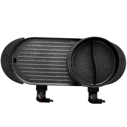 VEVOR Reversible Grill/Griddle, 9.7"x16.7" Pre-Seasoned Cast Iron Griddle, Rectangular Double Burner Griddle Pan, Non-Stick Family Pan Cookware with Handles, Flat Top Plate for BBQ, Gas Grill, Black