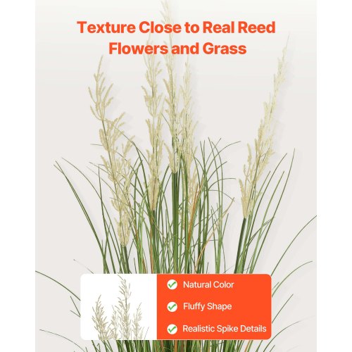 VEVOR Artificial Grass Plant, 2 Pack 47 inch Reed Flower Grass in Pot, Premium PVC Faux Fake Greenery Shrubs Plant for Indoor Outdoor House Home Garden Office Room Décor, Housewarming, Green