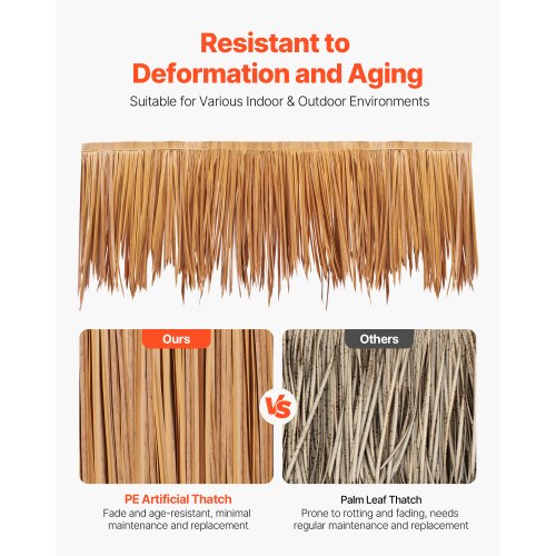 VEVOR Artificial Thatch Grass Roof, 1.6 x 16.4 ft Mexican Style Tiki Bar Hut Skirt Thatch Roofing Roll, Waterproof & Fire-Resistant, Palapa Duck Blind Grass for Patio Pool Beach Hawaiian Party Décor