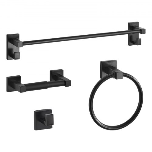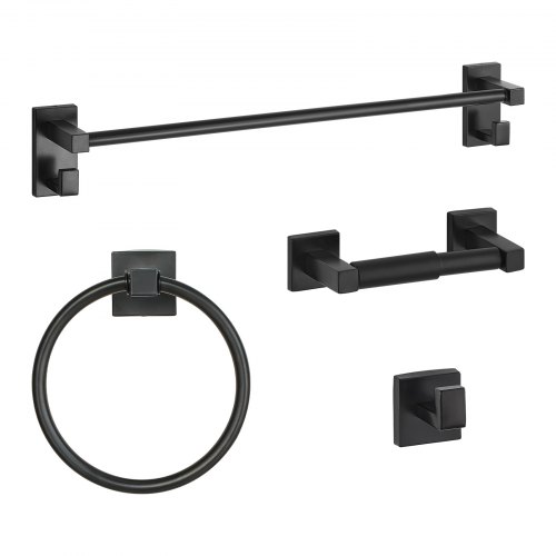 VEVOR Matte Black Bathroom Hardware Set, 4 Pieces Stainless Steel Bathroom Accessories Set, 24-inch Towel Bar, Towel Ring, Robe Towel Hook, Toilet Paper Holder, for Bath Room, Wall Mounted