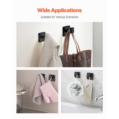 VEVOR Matte Black Bathroom Hardware Set, 10-Piece Bathroom Accessories Set, 2 Stainless Steel 24-in Towel Bars, 2 Towel Racks, 4 Robe Towel Hooks, 2 Toilet Paper Holders for Bath Room, Wall Mounted