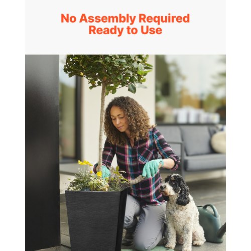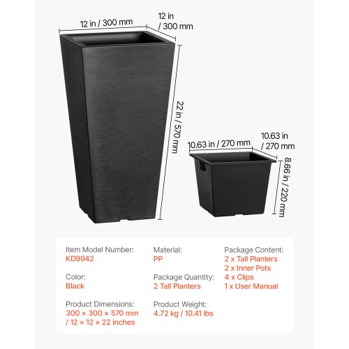 VEVOR Set of 2 Tall Outdoor Planters 22inch, Large Planters For Outdoor Indoor Plants, Black Tapered Square Front Porch Planters Flower Tree Plant Pots with Modern Design and Built-in Drainage
