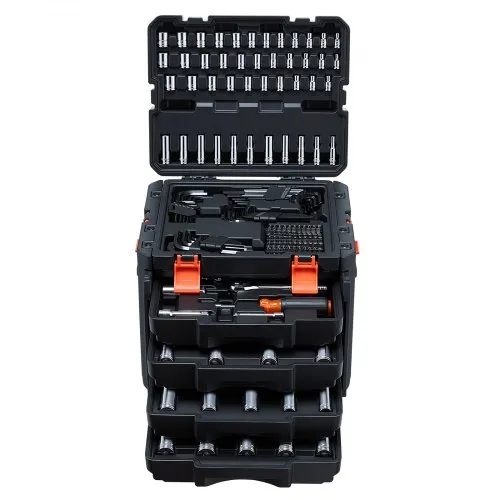 VEVOR Socket Set, 225 Pieces, 3/8 & 1/4 & 1/2 inch Drive Socket and Ratchet Set, SAE and Metric, Deep and Shallow, Mechanic Tool Kit with Bits, Accessories, Storage Case, CR-V Alloy Steel, for Repair