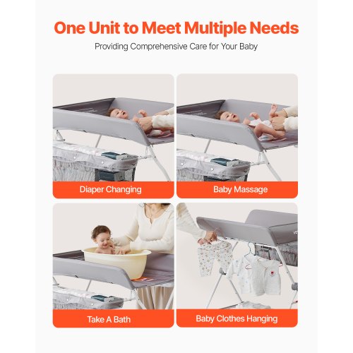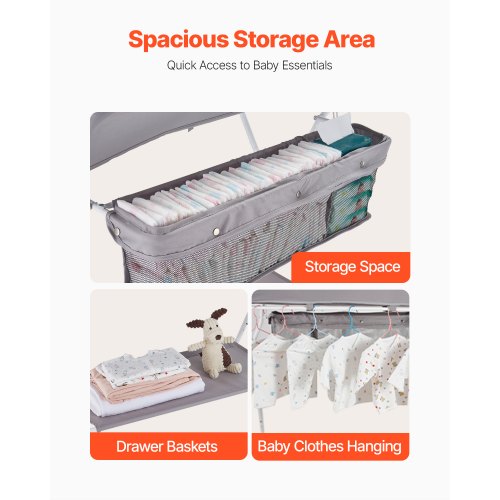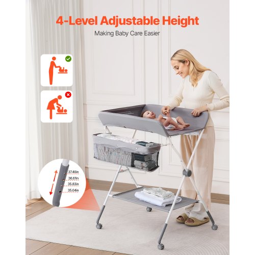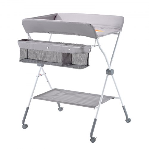 Foldable Baby Changing Diaper Station with Side Basket & Wheels Light Gray