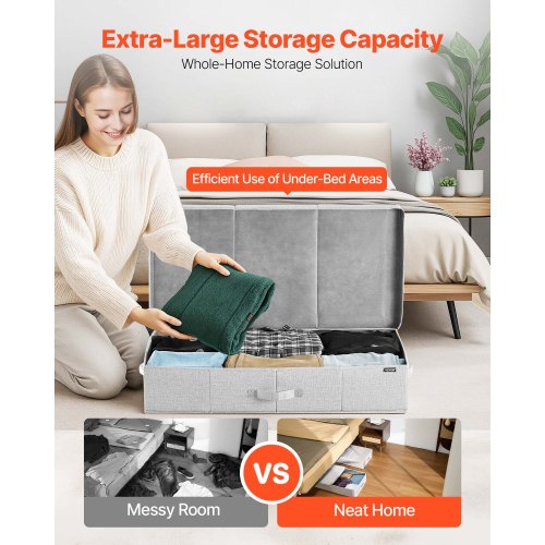 VEVOR Under Bed Storage with Clear Lids, 39.2 x 19.7 x 7.1 Inch, 90L Large Underbed Clothes Storage Containers, Low Profile Under Bed Drawer Shoe Organizer Bins Box for Blanket Shoe Bedroom, 4 Pack