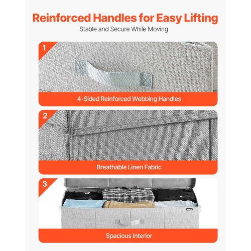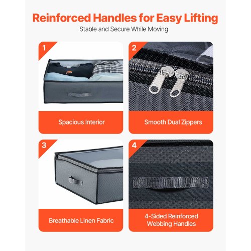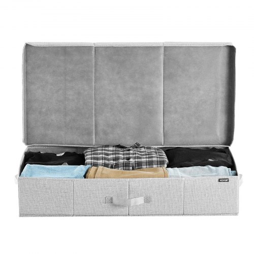 VEVOR Under Bed Storage with Lids, 31.7 x 15.9 x 6.1 Inch, 48L Large Underbed Clothes Storage Containers, Low Profile Gray Under Bed Drawer Shoe Organizer Bins Box for Blanket Shoe Bedroom, 2 Pack