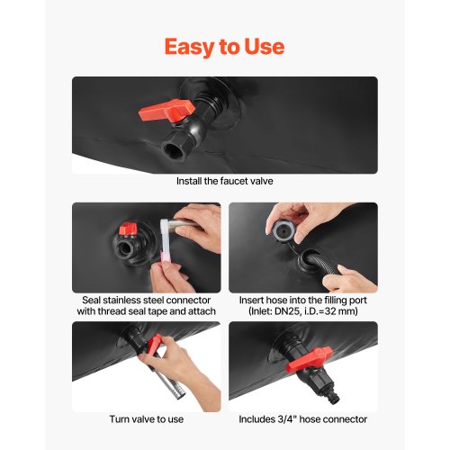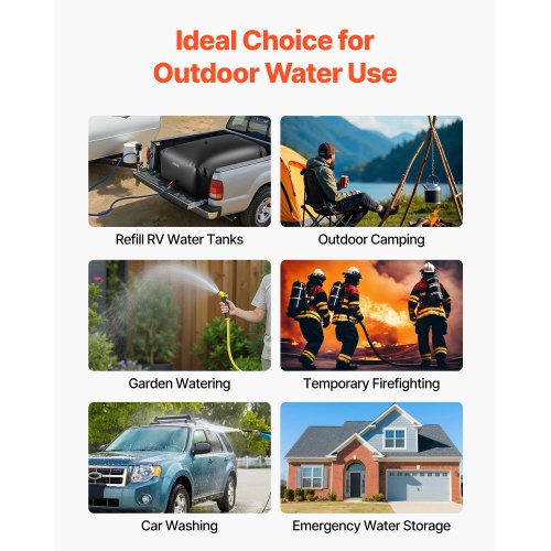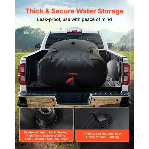 VEVOR Water Storage Bladder, 87 Gallon (330L) Water Storage Container Tank, 1000D PVC Large Capacity Soft Bag Bladder, Collapsible Portable for Garden Irrigation, Camping, RVs, Emergency Use - Black
