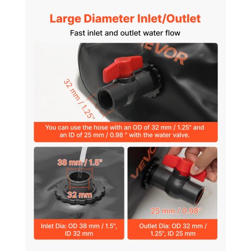 VEVOR Water Storage Bladder 264.2 Gallon Large Capacity Water Bag, Portable & Collapsible Soft Waters Container, Leakproof & Tear-Resistant PVC Emergency Waters Storage Tank for RV Truck & Outdoor Use