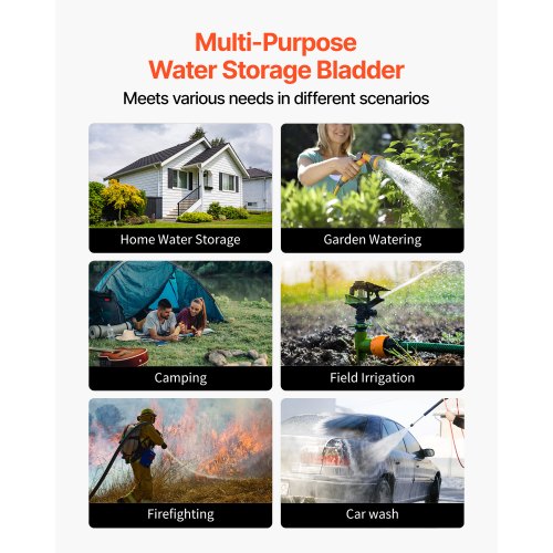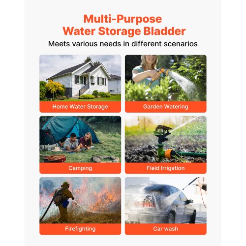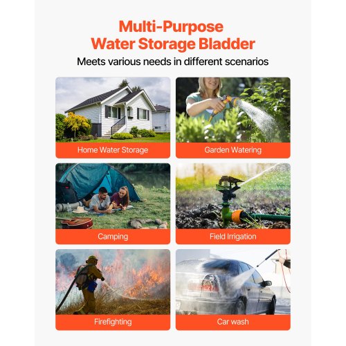 VEVOR Water Storage Bladder, 264 Gallon (1000L) Water Storage Container Tank, 1000D PVC Large Capacity Soft Bag Bladder, Collapsible Portable for Garden Irrigation, Camping, RV, Emergency Use - Black