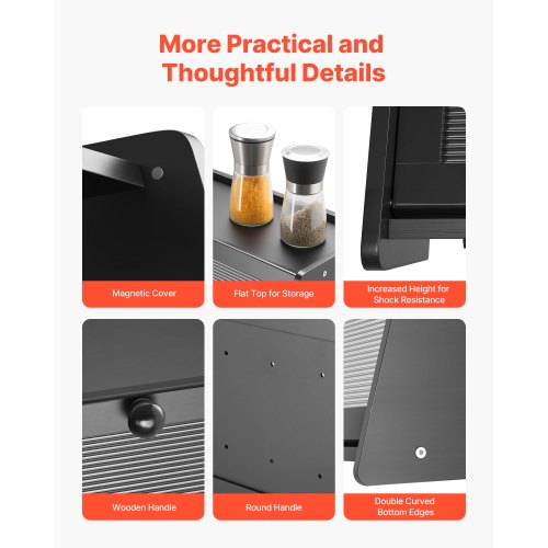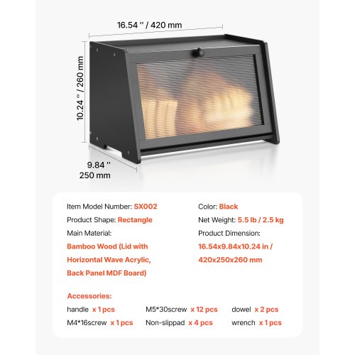 VEVOR Double Layer Bread Box for Kitchen Counter, Large Capacity Bamboo Bread Storage Container, Farmhouse Wooden Breadbox for Homemade Bread, Storage Holder Bin with Acrylic Wavy Door Panel, Black