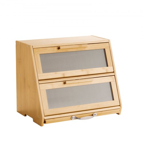 VEVOR Double Layer Bread Box for Kitchen Counter, Large Capacity Bamboo Bread Storage Container, Farmhouse Wooden Breadbox for Homemade Bread, Storage Holder Bin with Acrylic Wavy Door Panel, Natural