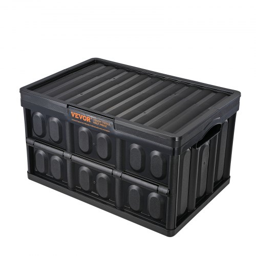 VEVOR Collapsible Storage Bins with Lids, 45L 3 Packs, Folding Plastic Stackable Utility Crates with Handles, Large Heavy Duty Containers for Clothes, Toys, Books, Snack, Shoes, and Grocery Organizing