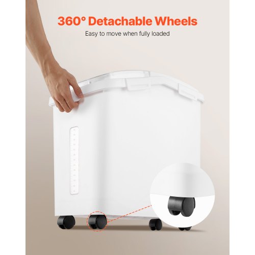 VEVOR Rice Storage Container, 11.4Gallon/50L Capacity Large Dog Food Dispenser Bin, Kitchen Ingredient Grain Cereal Flour Bin, Pet food Containers with Wheels, Scoop, Scale Line, Airtight Lid, 1 Pack