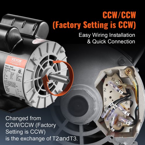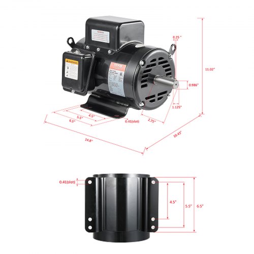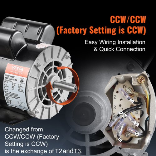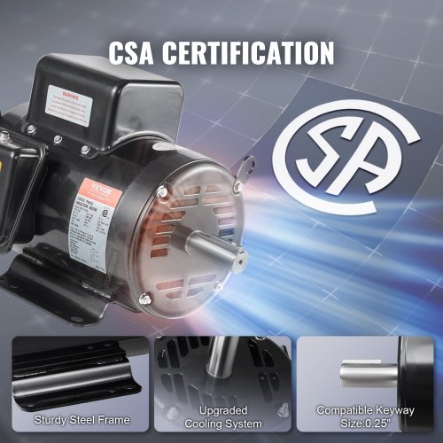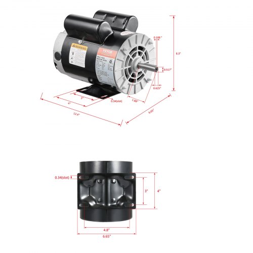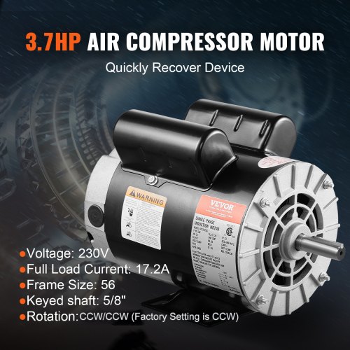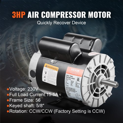 VEVOR 3HP Air Compressor Electric Motor, 230V 15.5 Amps, 56 Frame 3450RPM, 5/8" Keyed Shaft, 1.88" Shaft Length, Single Phase, CW/CCW Rotation (Factory Setting is CCW)