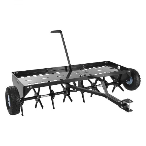 VEVOR Tow Behind Plug Aerator, 40 in Lawn Core Aerator Tool Universal Hitch, 120lbs Weight Capacity, Heavy Duty & Rust-Resistant, Pull Behind Spike Aerators with Tray for Farmland & Garden Tractors