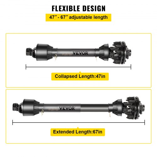 VEVOR PTO Shaft, 1-3/8” PTO Drive Shaft, 6 Spline Both Ends PTO Driveline Shaft, Series 6 Tractor PTO Shaft, 47”-67” Brush Hog PTO Shaft, Black PTO Shaft with Slip Clutch for Bush Hog/Finish Mower
