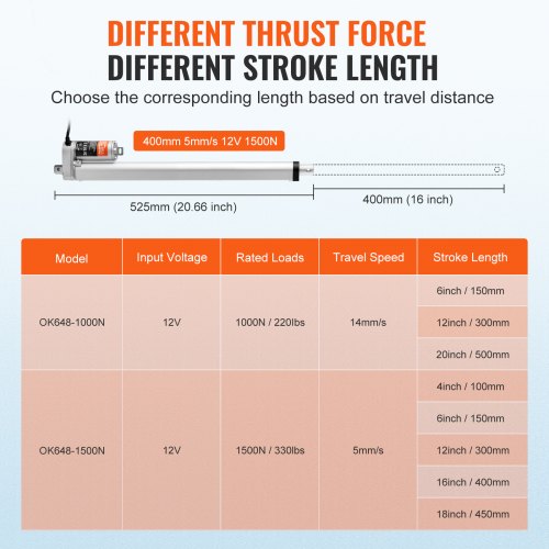 VEVOR Linear Actuator 12V, 16 Inch High Load 330lbs/1500N Linear Actuator, 0.19"/s Linear Motion Actuator with Mounting Bracket and IP54 Protection