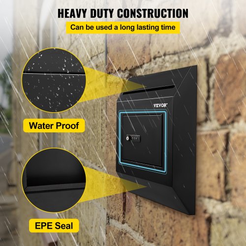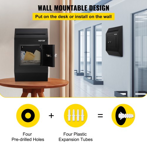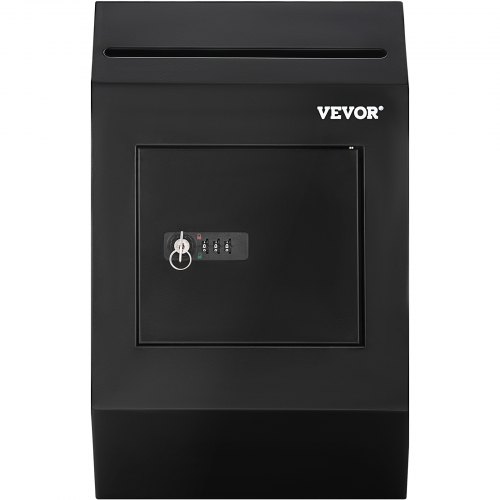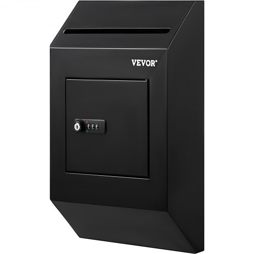 VEVOR Suggestion Box, Donation Ballot Box with Key & Combination Lock, Wall Mounted Collection Box with Wide Drop Slot, Steel Key Drop Box for Home Office School, 16.1"x10"x3.9", Black