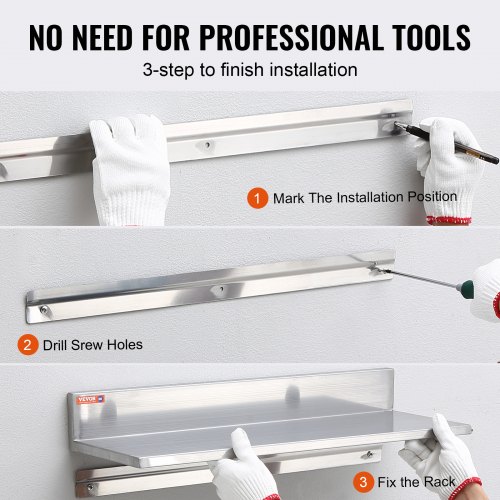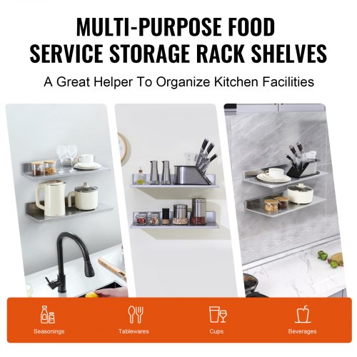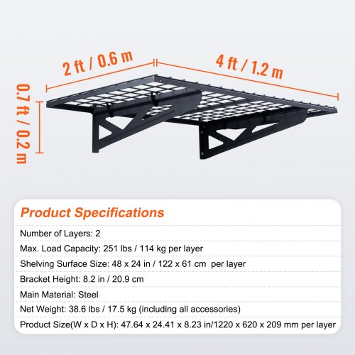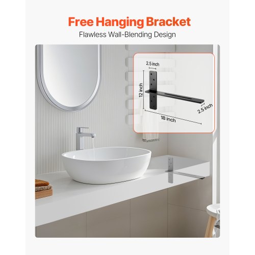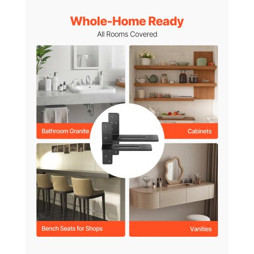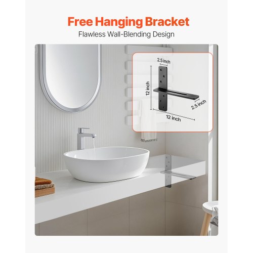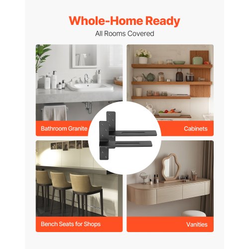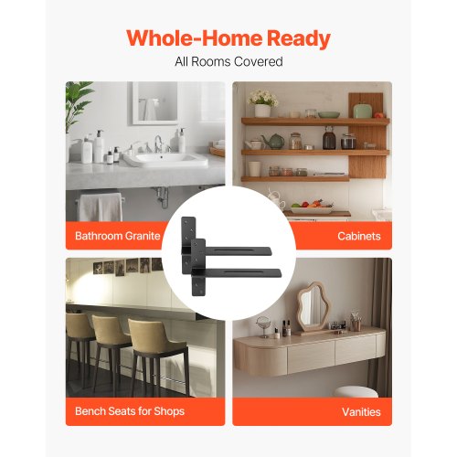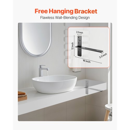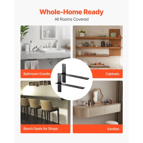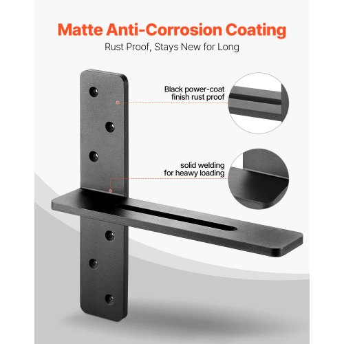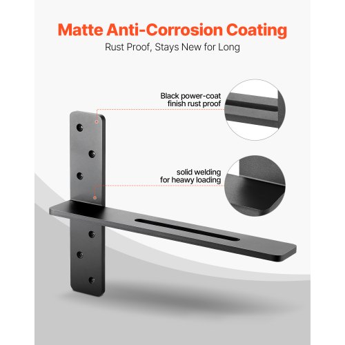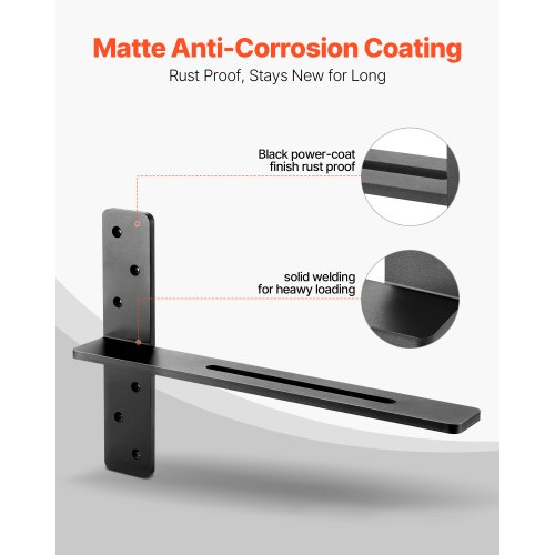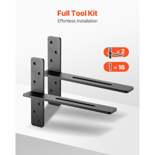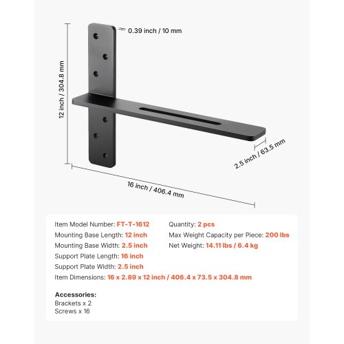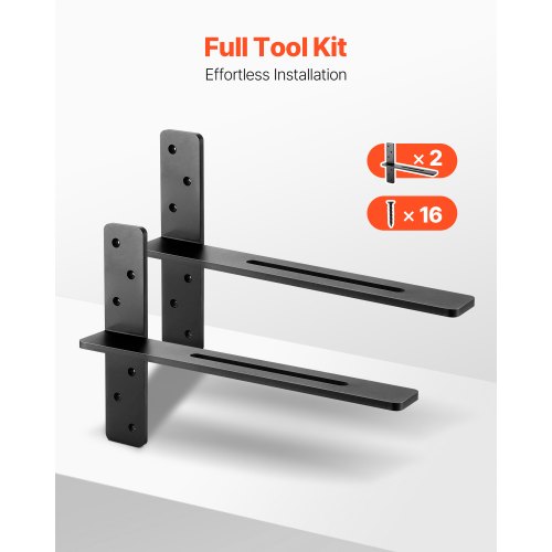 VEVOR T Shelf Brackets 2 Pcs, 200 lbs/90 kg Weight Capacity, 14x2.89x12 in / 355.6x73.5x304.8 mm, Solid Steel Heavy Duty Brackets for Shelves, Countertop Support Floating Bracket Hardware with Screws