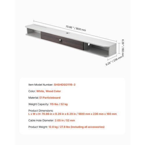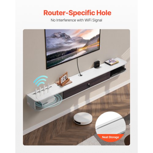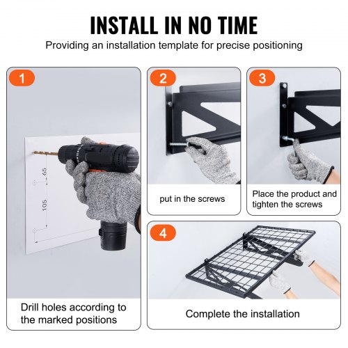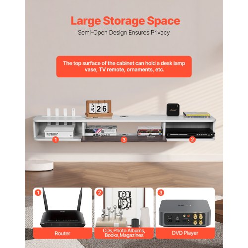 VEVOR Wall Mounted Folding Table, 47.2 x 19.7 inches Wall Mount Table, Floating Desk with Iron Bracket, Fold Down Desk for Small Spaces, Home Office, Dining, Laundry Room, Kitchen, Bar, White