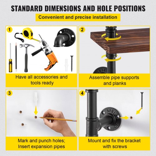 VEVOR Industrial Pipe Shelf, 2 Tier 48x 9.84in, Wall-Mount Floating Rustic Wood Shelves Bracket Display Bookshelf, Storage Rack Sundries Holder for Kitchen Bedroom Bathroom Living Room, Black