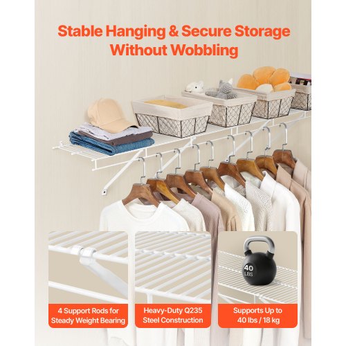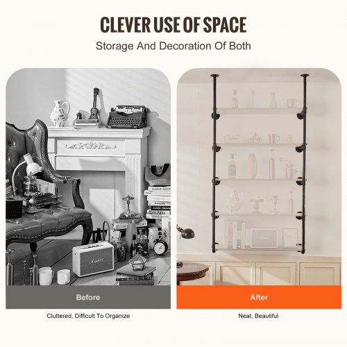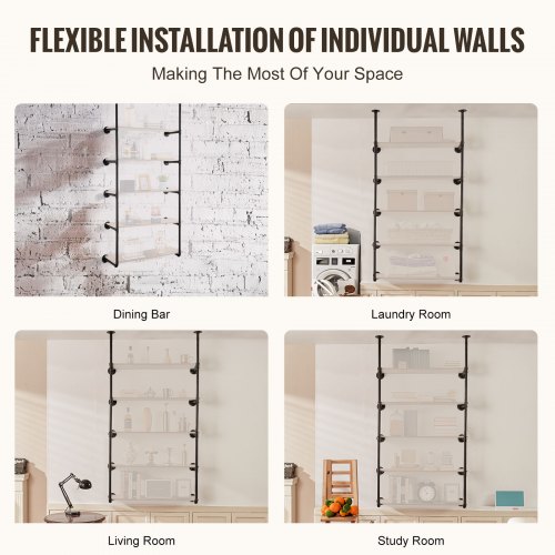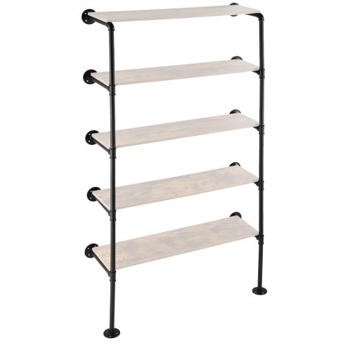 VEVOR Industrial Pipe Shelf, 5 Tier 2PCS, 9.84in Applicable Board Width Wall-Mount Floating Rustic Wood Shelves Bracket Bookshelf,Storage Holder for Kitchen Bedroom Bathroom, (Planks NOT Included)
