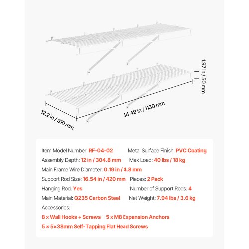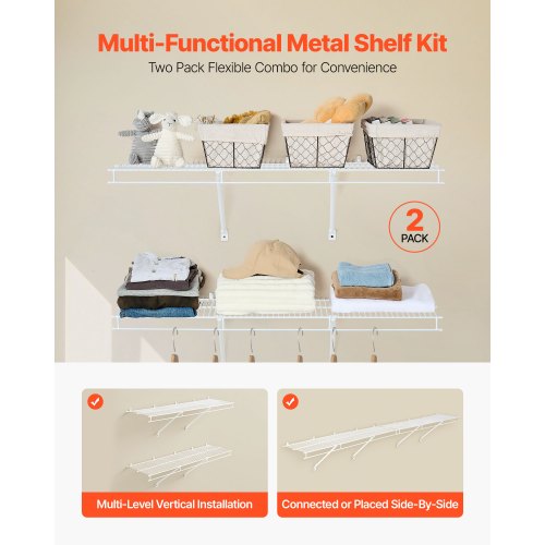 VEVOR Industrial Pipe Shelf, 5 Tier 2PCS, 11.8in Applicable Board Width Wall-Mount Floating Rustic Wood Shelves Bracket Bookshelf,Storage Holder for Kitchen Bedroom Bathroom, (Planks NOT Included)