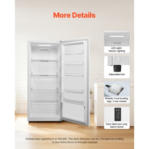 VEVOR Convertible Freezer/Refrigerator, 14 Cu.Ft Frost Free Upright Freezer with Temp Control Panel, Door Open too Long Alarm, Adjustable Shelves and LED, Standing Fridge for Kitchen, Office, Garage
