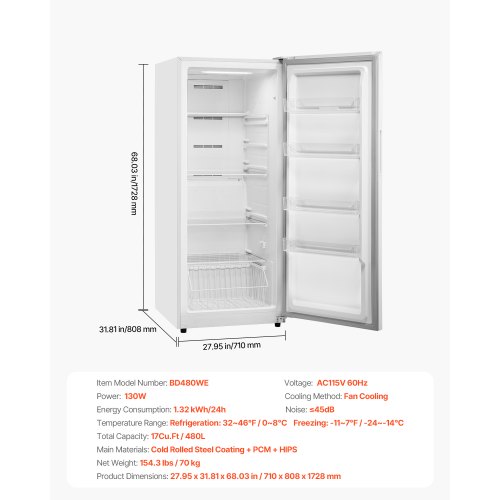 VEVOR Convertible Freezer/Refrigerator, 17 Cu.Ft Frost Free Upright Freezer with Temp Control Panel, Door Open too Long Alarm, Adjustable Shelves and LED, Standing Fridge for Kitchen, Office, Garage