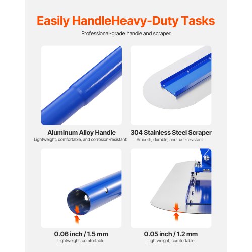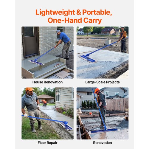 VEVOR Bull Float Magnesium Concrete Float, 47.24 x 7.28 Inch Round End Concrete Float Tool with 4 Aluminum Alloy Replaceable Handles, Cement Finishing Float for Various Industrial Applications
