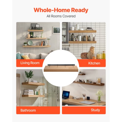 VEVOR Industrial Pipe Shelf, 5 Tier 24x9.84in, Wall-Mount Floating Rustic Wood Shelves Bracket Display Bookshelf, Storage Rack Sundries Holder for Kitchen Bedroom Bathroom Living Room, Black