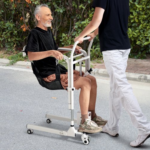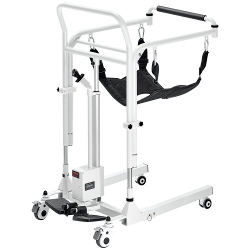 VEVOR Electric Patient Lift Transfer Chair, Quick-Folding Patient Lift Wheelchair with Adjustable Height, Bedside Commode Toilet Chair with Wheels & 2 Seat Cushion for Senior Disabled, 220LBS Capacity