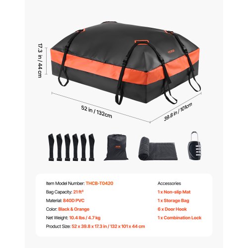 VEVOR Car Rooftop Cargo Carrier Bag, 21 Cubic Feet Cargo Carrier for Car Roof, 100% Waterproof 900D Oxford Cloth Roof Luggage Bag for All Vehicle with/without Rack- with Lock, Non-Slip Mat, Door Hooks