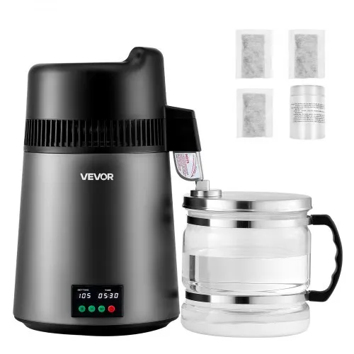 VEVOR Water Distiller, 4L 1.05 Gallon Pure Water Purifier Filter For Home Countertop, 750W Distilled Water Maker, Stainless Steel Interior Distiller Water Making Machine to Make Clean Water, Black