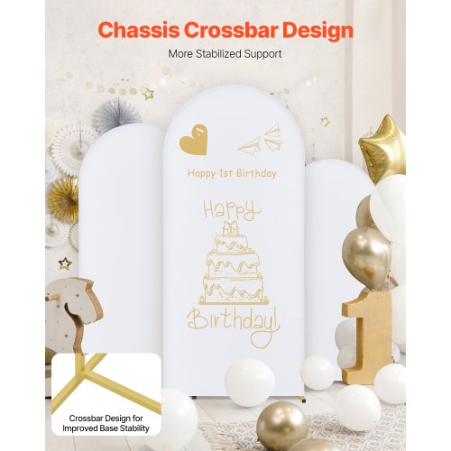 VEVOR Wedding Arch Backdrop Stand, Set of 3, Metal Stable Stand with Case Connection & Chassis Crossbar Design, Easy-to-Assemble Gold Stand with Premium Gauze, Fit for Birthday, Celebration, Holiday