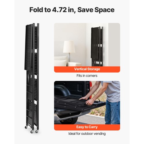 VEVOR 4-Tier Foldable Storage Shelf, 36W x 21D x 60H Inch Folding Metal Rack Shelving Unit, No Assembly Organizer Shelf with 5 Wheels & 4 Hooks for Pantry, Kitchen, Garage, Basement, Black