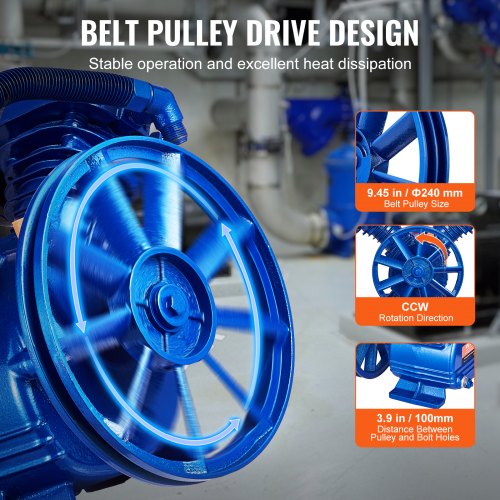 VEVOR Air Compressor Pump Head, 10HP 17.5CFM @ 90PSI, 3-Cylinder Oil Lubricated Air Compressor Piston Pump Head, Dual Stage V-Type Cast Iron Air Compressor Pump Replacement with Max. 185PSI Pressure
