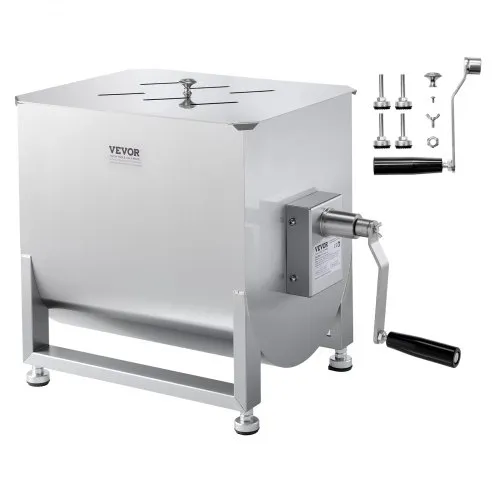 VEVOR Manual Meat Mixer, 20L Fixed Tank Meat Processing Equipment(Mixing Max 30LBS for Meat), Stainless Steel Meat Mixer, Sausage Mixer Machine with Lid Handle Gear Reducer, Ground Beef Hand Mixer