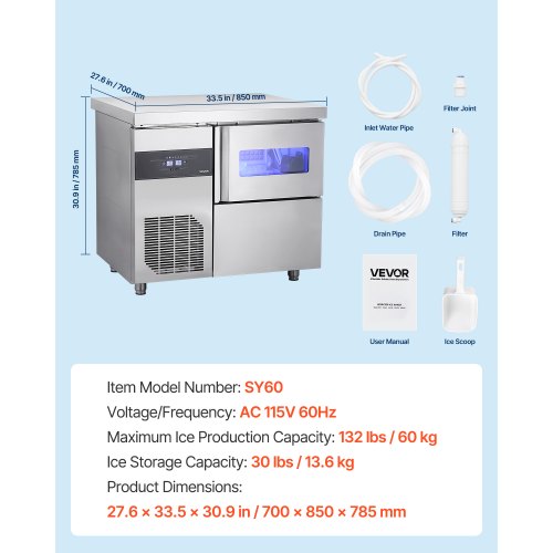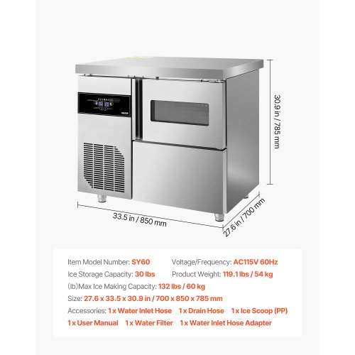 VEVOR Stainless Steel Prep Table, 30 x 30 x 36 Inch, 800lbs Load Capacity Heavy Duty Metal Worktable with Adjustable Undershelf & Feet, Commercial Workstation for Kitchen Garage Restaurant Backyard