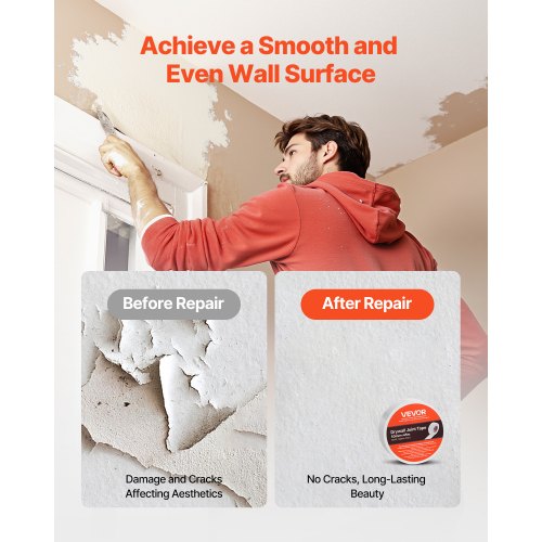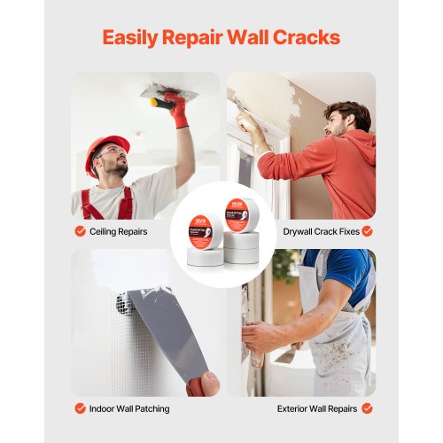 VEVOR Drywall Mesh Tape, 1.97 inch W x 147.64 ft L Self-Adhesive Fiberglass Drywall Joint Tape, 36 Rolls Dry Wall Patch for Easy Sheetrock Ceiling Crack Repair, to Achieve Smooth Even Wall Surface