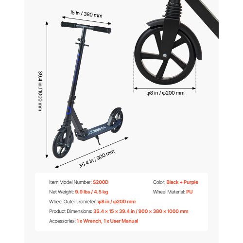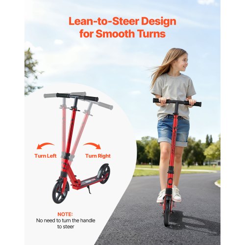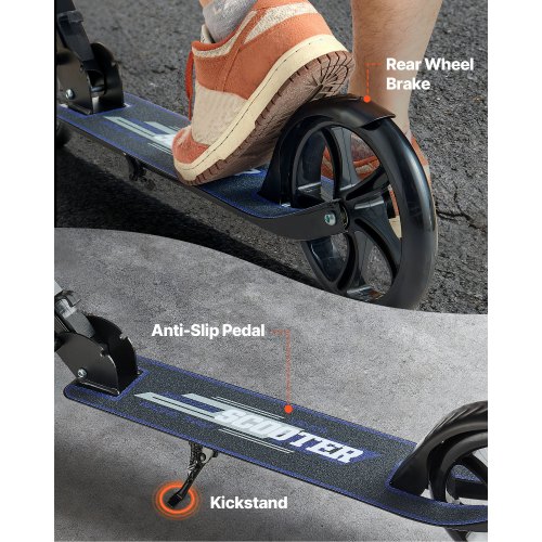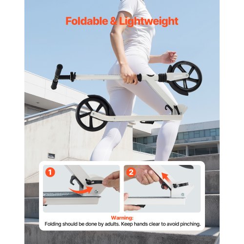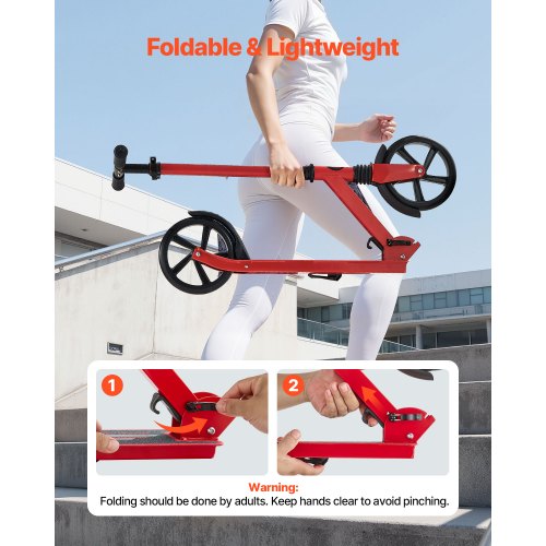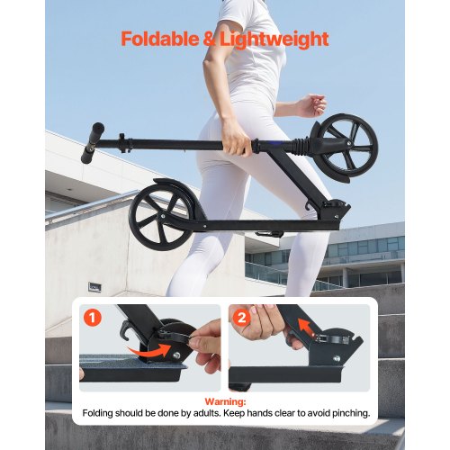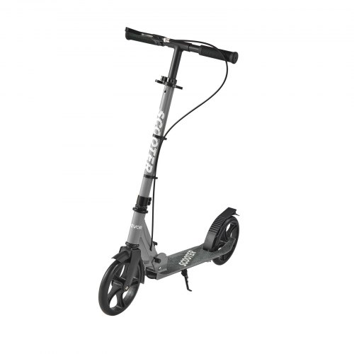 VEVOR Kick Scooter for Kids Ages 8+, Teens & Adults, 2-Wheel Toddler Scooter with Adjustable Height Handlebar, Wide Anti-Slip Deck, Foldable Lightweight Frame for Boys & Girls up to 220 lbs, Gray